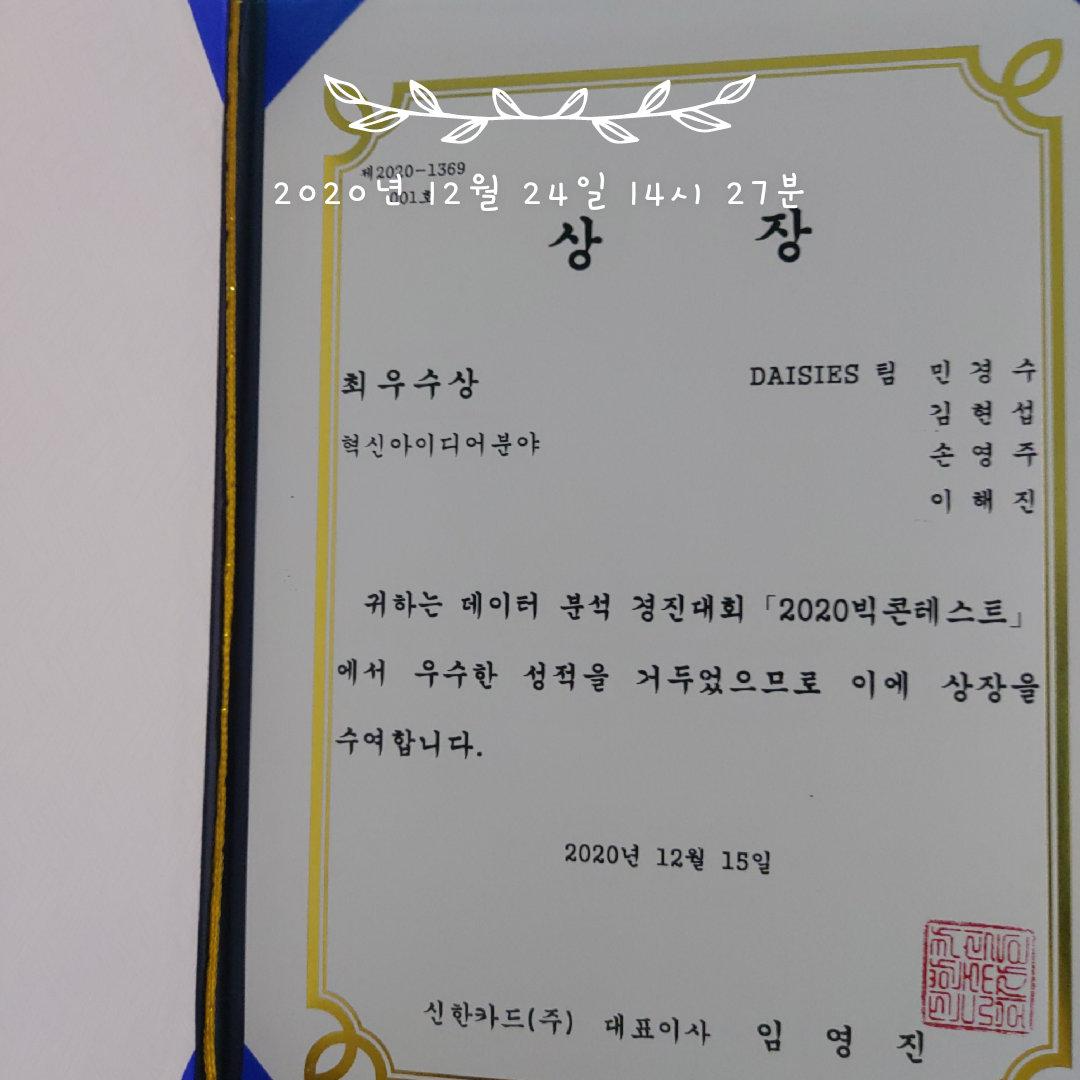 저희는 최우수상-신한카드상을 수상했습니다 !