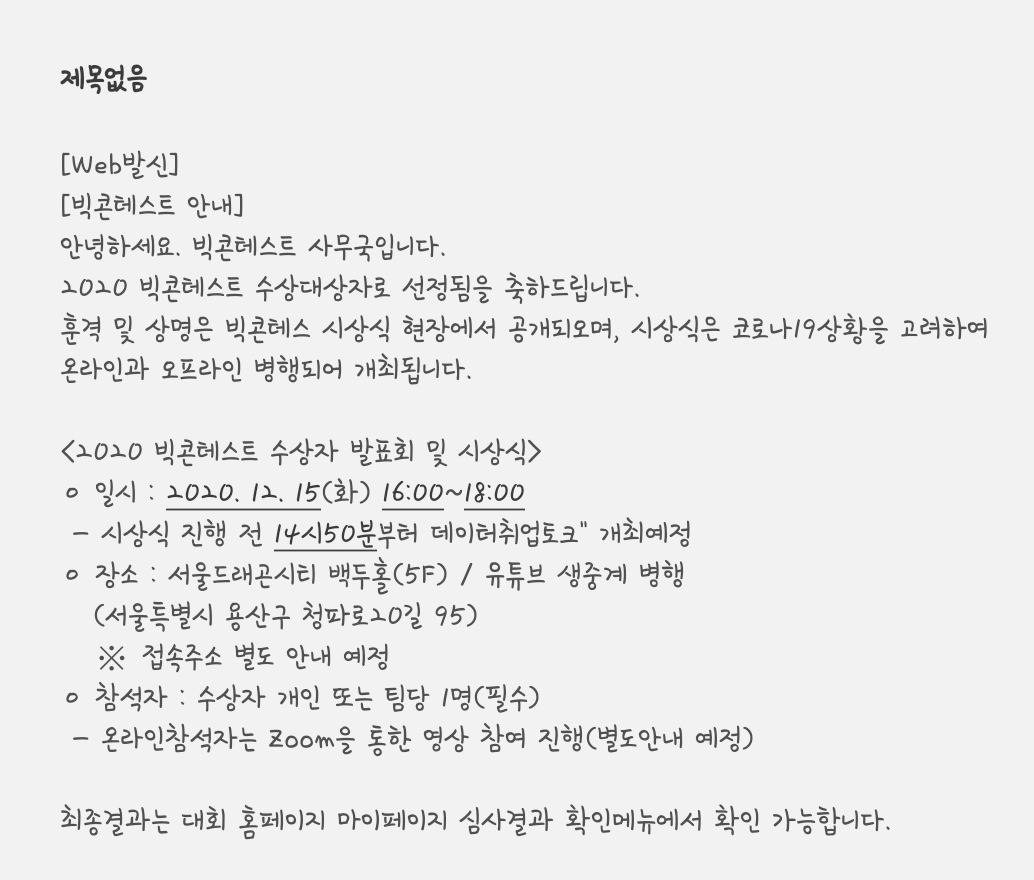빅콘테스트 후기글입니다!